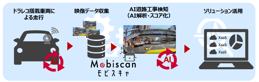- サーバ側AI:「モビスキャ」内のサーバAIがフェンス、矢印看板、作業員、重機などを再検知しスコアリング
