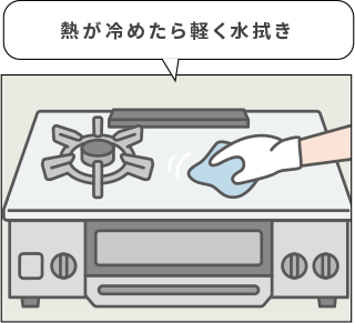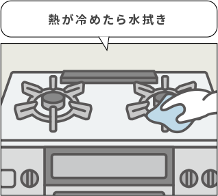 ガスコンロは使い終わったらしっかりと熱が冷めたことを確認し、その都度軽く水拭きを行い汚れを落とすようにしましょう。