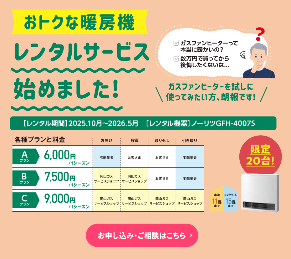 岡山ガスご契約者さま向け特別価格商品をご紹介!